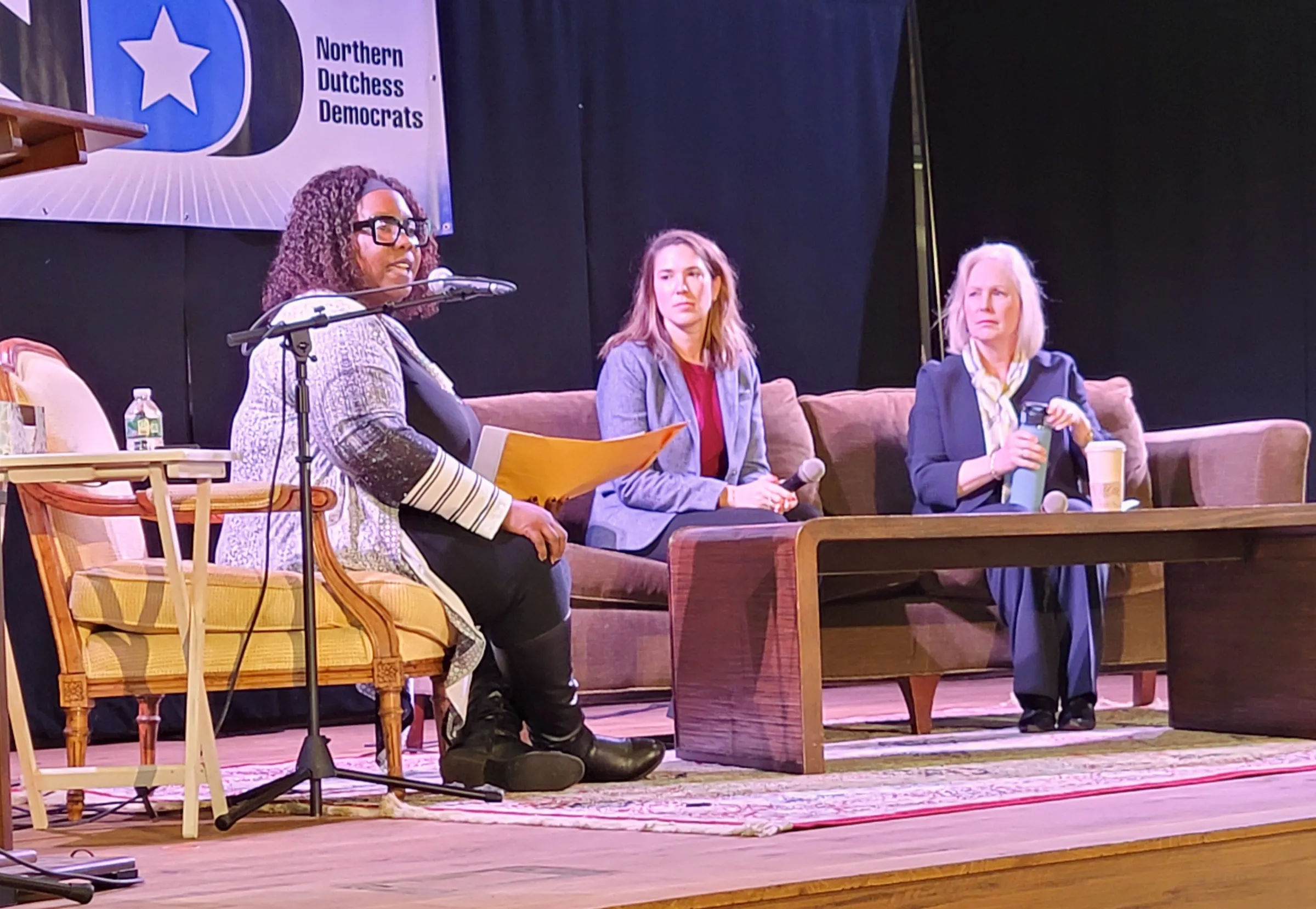 Kenya Gadsden, former Fishkill councilwoman and two-time candidate for Dutchess County clerk, gave a rousing introduction to the “two senators.” Gillibrand highlighted her work to combat gun trafficking (particularly to minors) and violence in the military and to promote child mental health. Hinchey emphasized her efforts to empower rural and smaller communities and to pioneer breakfasts and lunches for underprivileged students.